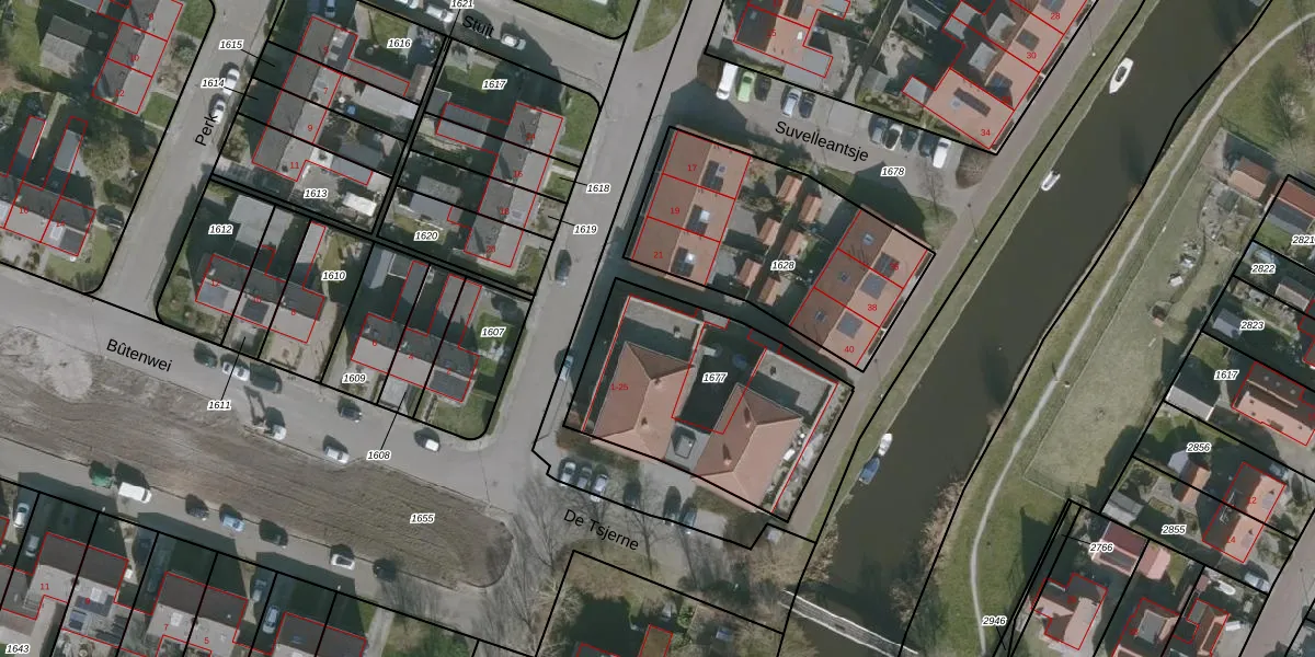 Het perceel waarop De Tsjerne 15 staat heeft een oppervlakte van 916 m². Dit is een groot perceel. De perceeloppervlakte wordt geregistreerd door het Kadaster. Gedetailleerde informatie over de maten van dit perceel kunt u vinden in het rapport Kadastrale kaart met maatvoering van De Tsjerne 15.