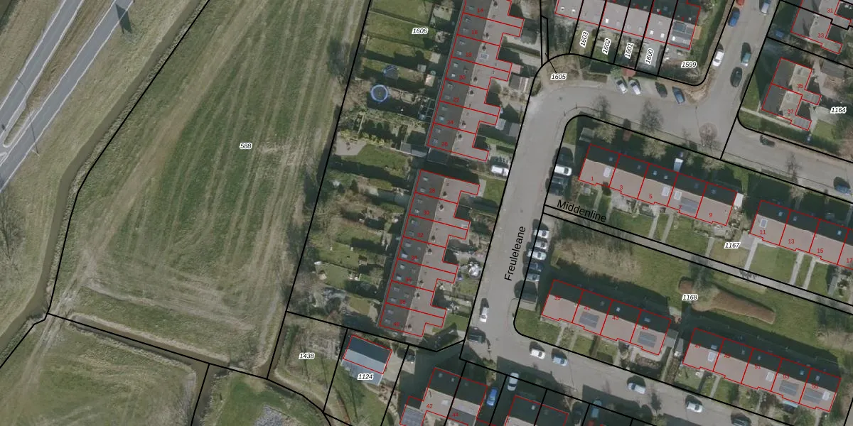 Freuleleane 30 is gelegen op kadastraal perceel WMS02F1606. Deze kadastrale aanduiding is uniek en wordt gebruikt door het Kadaster om eigendomsrechten en andere zakelijke rechten vast te leggen. Het perceel maakt onderdeel uit van de kadastrale gemeente Wommels.