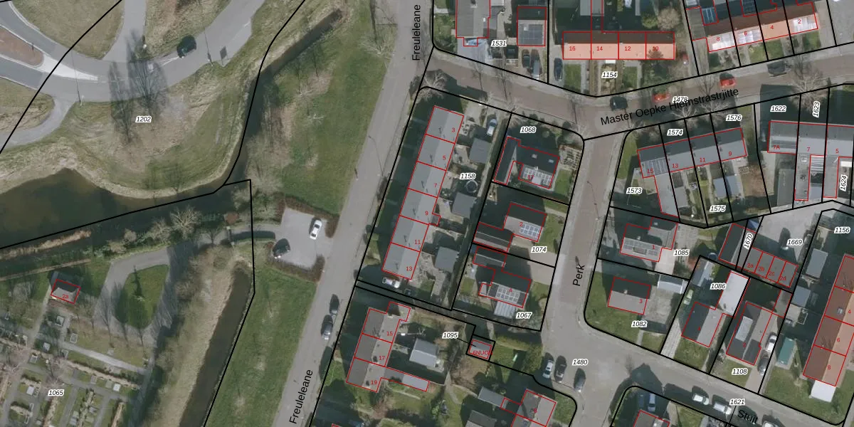 Het perceel waarop Freuleleane 9 staat heeft een oppervlakte van 1110 m². Dit is een zeer groot perceel. De perceeloppervlakte wordt geregistreerd door het Kadaster. Gedetailleerde informatie over de maten van dit perceel kunt u vinden in het rapport Kadastrale kaart met maatvoering van Freuleleane 9.