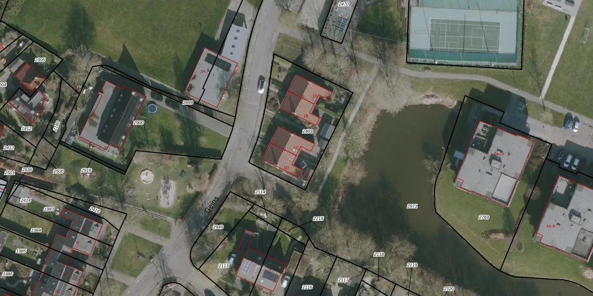 Geins 1-C is gelegen op kadastraal perceel WMS02A2469. Deze kadastrale aanduiding is uniek en wordt gebruikt door het Kadaster om eigendomsrechten en andere zakelijke rechten vast te leggen. Het perceel maakt onderdeel uit van de kadastrale gemeente Wommels.