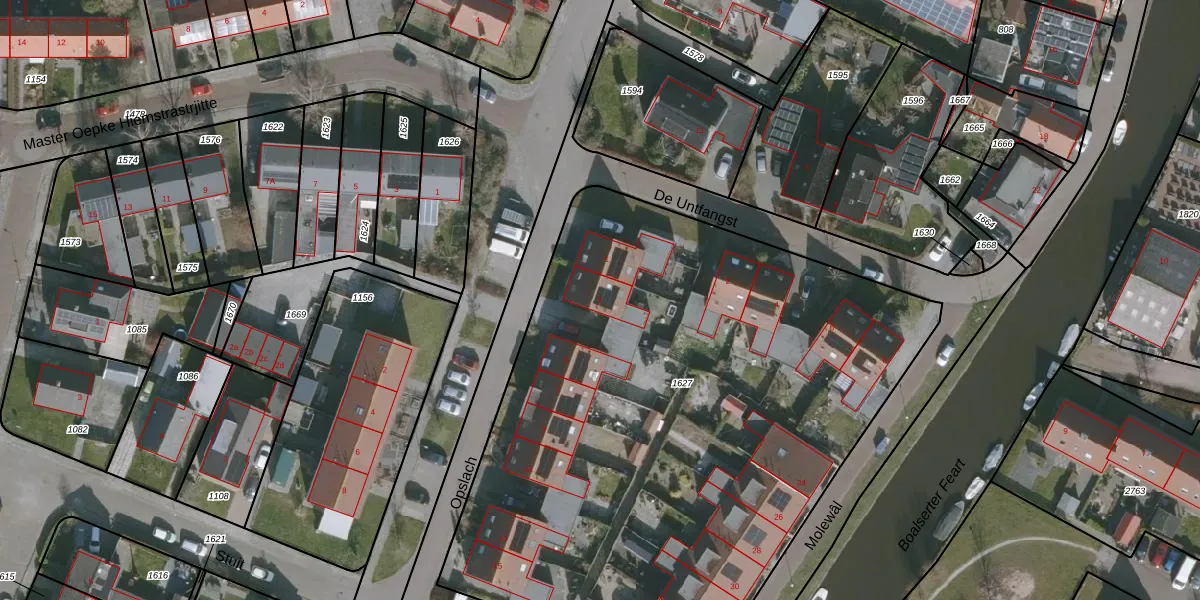 Het adres is gelegen op perceel 1627 in de sectie F en de kadastrale gemeente Wommels. De kadastrale aanduiding is aldus WMS02-F-1627. Het perceel is kleiner dan gemiddeld in Wommels. Het perceel is 4000 m² groot, terwijl het gemiddelde ligt op 9359,79 m². De grootste perceeloppervlakte in de kadastrale gemeente is 13,1 ha. De kleinste oppervlakte bedraagt 0 m². Op het perceel liggen in totaal 18 adressen. De huidige grenzen van het perceel zijn digitaal in de Basisregistratie Kadaster (BRK) geregistreerd op 07-05-2010.