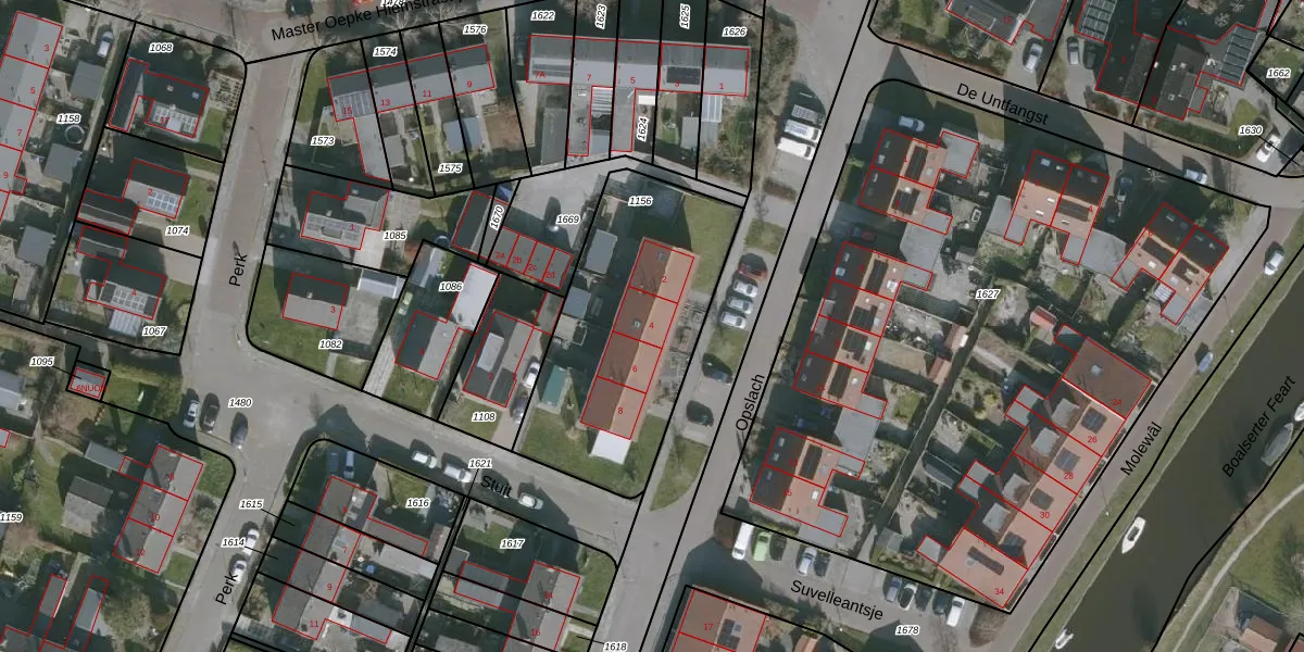 Het perceel waarop Opslach 4 staat heeft een oppervlakte van 1005 m². Dit is een zeer groot perceel. De perceeloppervlakte wordt geregistreerd door het Kadaster. Gedetailleerde informatie over de maten van dit perceel kunt u vinden in het rapport Kadastrale kaart met maatvoering van Opslach 4.