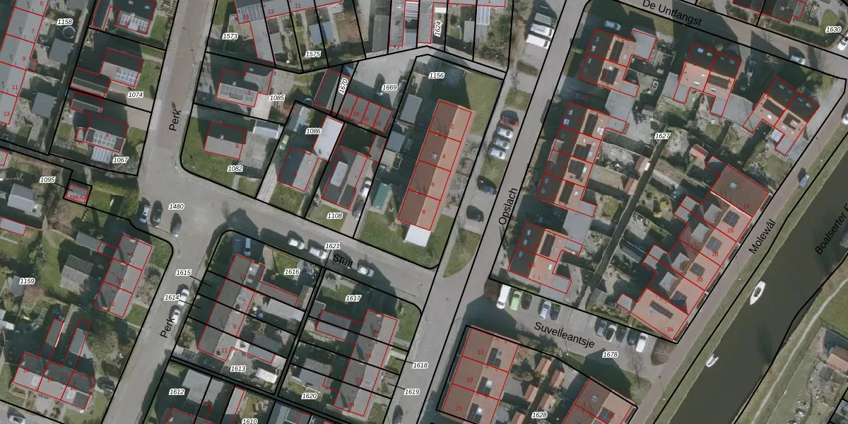 Het perceel waarop Opslach 8 staat heeft een oppervlakte van 1005 m². Dit is een zeer groot perceel. De perceeloppervlakte wordt geregistreerd door het Kadaster. Gedetailleerde informatie over de maten van dit perceel kunt u vinden in het rapport Kadastrale kaart met maatvoering van Opslach 8.