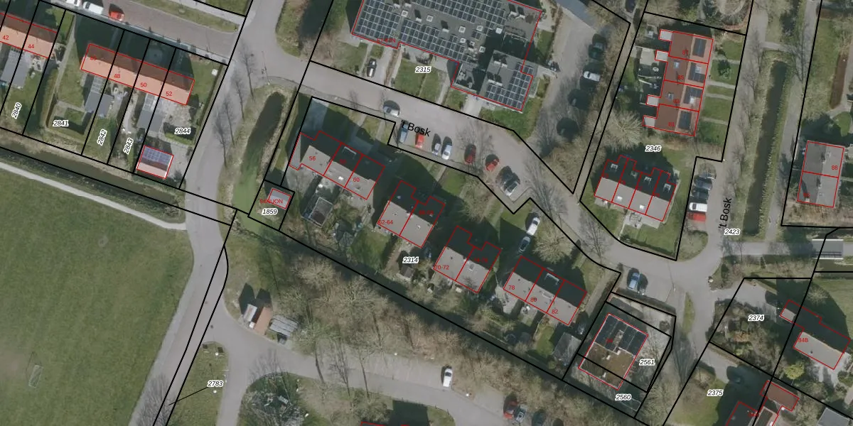 Het perceel waarop 't Bosk 66 staat heeft een oppervlakte van 2490 m². Dit is een zeer groot perceel. De perceeloppervlakte wordt geregistreerd door het Kadaster. Gedetailleerde informatie over de maten van dit perceel kunt u vinden in het rapport Kadastrale kaart met maatvoering van 't Bosk 66.