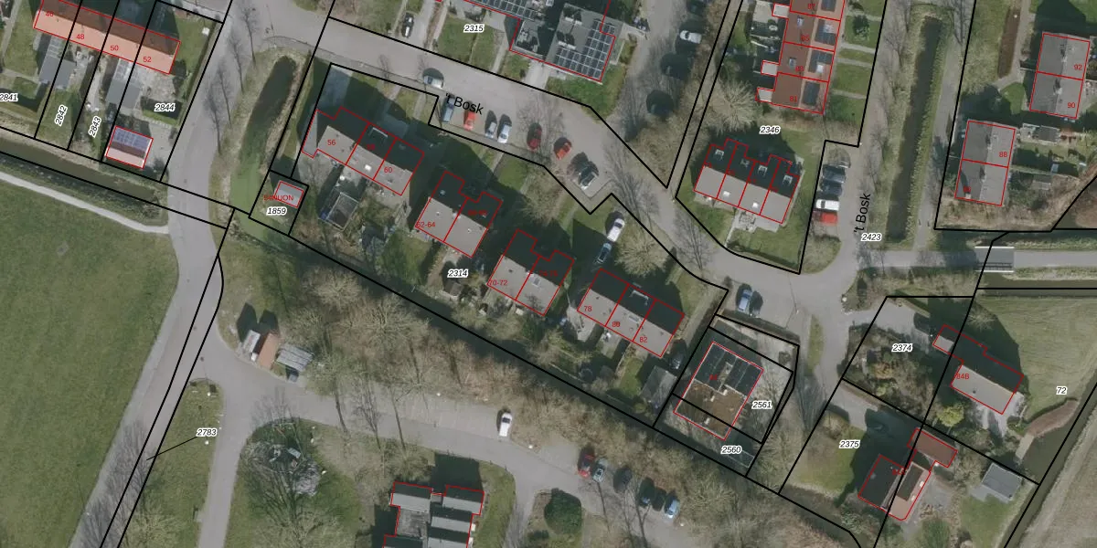 Het perceel waarop 't Bosk 74 staat heeft een oppervlakte van 2490 m². Dit is een zeer groot perceel. De perceeloppervlakte wordt geregistreerd door het Kadaster. Gedetailleerde informatie over de maten van dit perceel kunt u vinden in het rapport Kadastrale kaart met maatvoering van 't Bosk 74.
