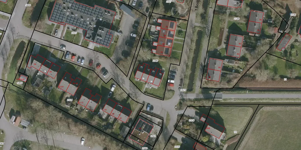 Het perceel waarop 't Bosk 77 staat heeft een oppervlakte van 1350 m². Dit is een zeer groot perceel. De perceeloppervlakte wordt geregistreerd door het Kadaster. Gedetailleerde informatie over de maten van dit perceel kunt u vinden in het rapport Kadastrale kaart met maatvoering van 't Bosk 77.