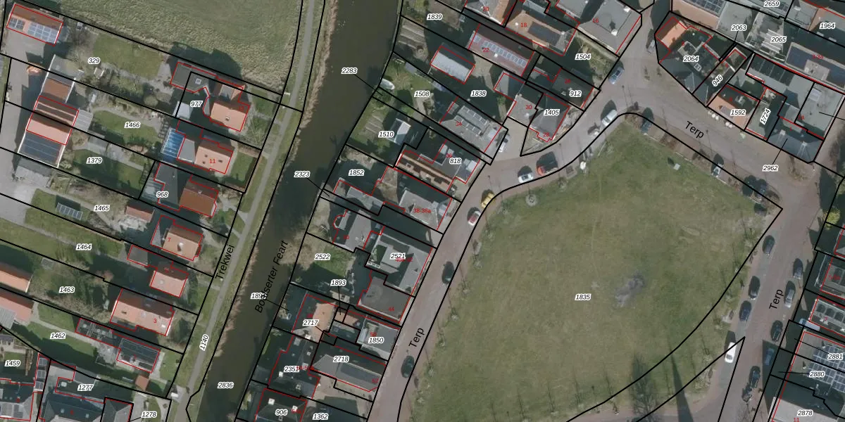 Het perceel waarop Terp 38 staat heeft een oppervlakte van 311 m². Dit is een groot perceel. De perceeloppervlakte wordt geregistreerd door het Kadaster. Gedetailleerde informatie over de maten van dit perceel kunt u vinden in het rapport Kadastrale kaart met maatvoering van Terp 38.