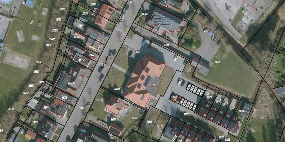 Het perceel waarop Walperterwei 8-A staat heeft een oppervlakte van 1895 m². Dit is een zeer groot perceel. De perceeloppervlakte wordt geregistreerd door het Kadaster. Gedetailleerde informatie over de maten van dit perceel kunt u vinden in het rapport Kadastrale kaart met maatvoering van Walperterwei 8-A.
