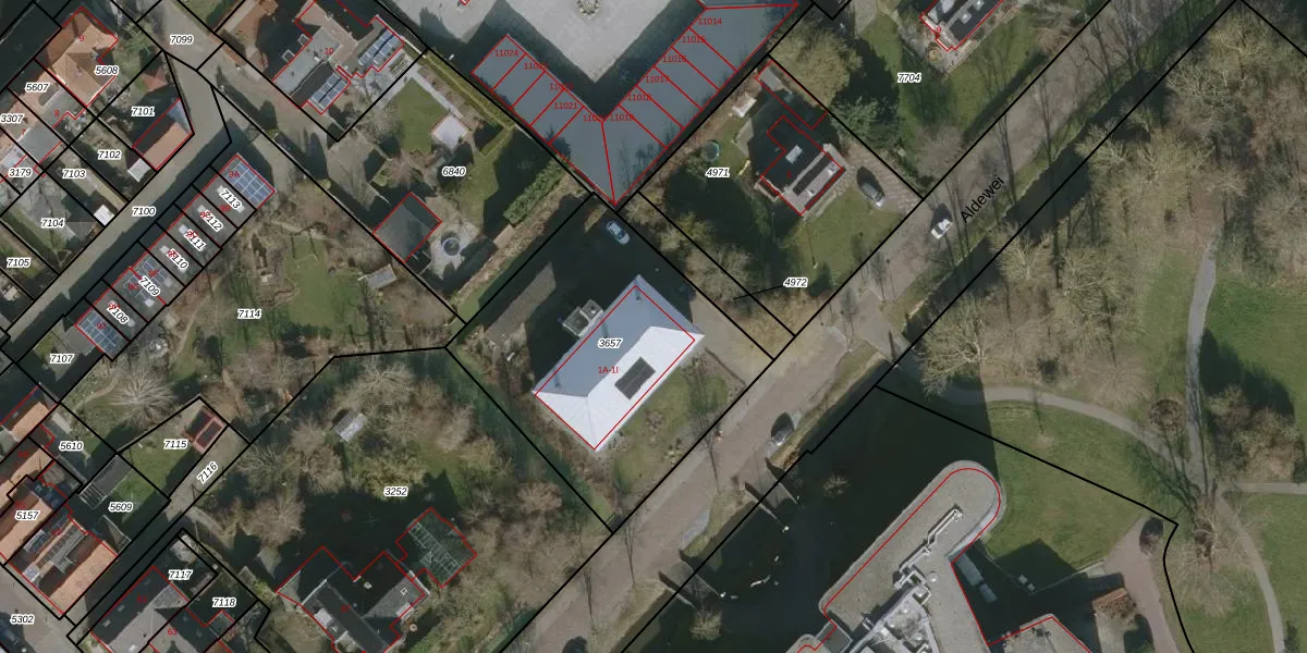 Het perceel waarop Aldewei 1-C staat heeft een oppervlakte van 1290 m². Dit is een zeer groot perceel. De perceeloppervlakte wordt geregistreerd door het Kadaster. Gedetailleerde informatie over de maten van dit perceel kunt u vinden in het rapport Kadastrale kaart met maatvoering van Aldewei 1-C.