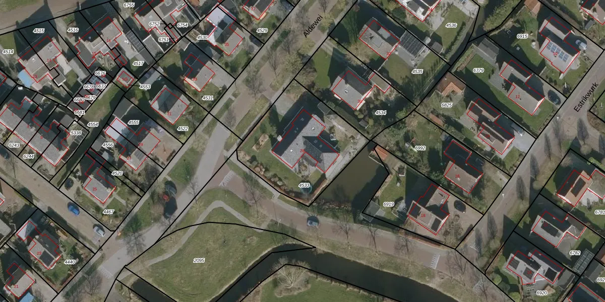 Het perceel waarop Aldewei 28 staat heeft een oppervlakte van 1005 m². Dit is een zeer groot perceel. De perceeloppervlakte wordt geregistreerd door het Kadaster. Gedetailleerde informatie over de maten van dit perceel kunt u vinden in het rapport Kadastrale kaart met maatvoering van Aldewei 28.