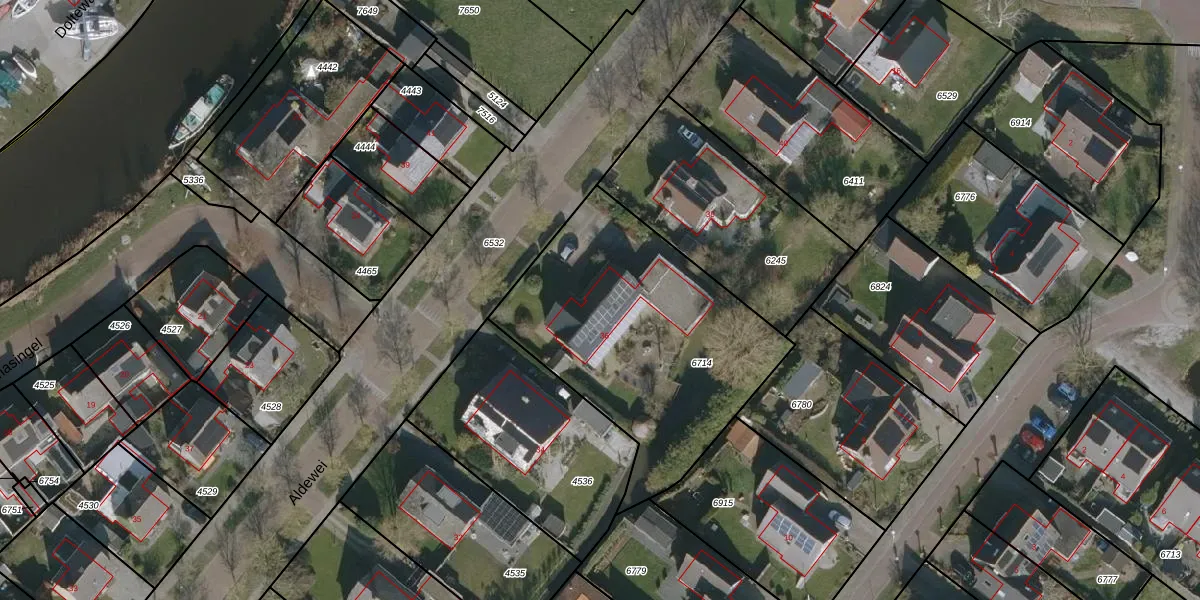 Het perceel waarop Aldewei 36 staat heeft een oppervlakte van 1280 m². Dit is een zeer groot perceel. De perceeloppervlakte wordt geregistreerd door het Kadaster. Gedetailleerde informatie over de maten van dit perceel kunt u vinden in het rapport Kadastrale kaart met maatvoering van Aldewei 36.