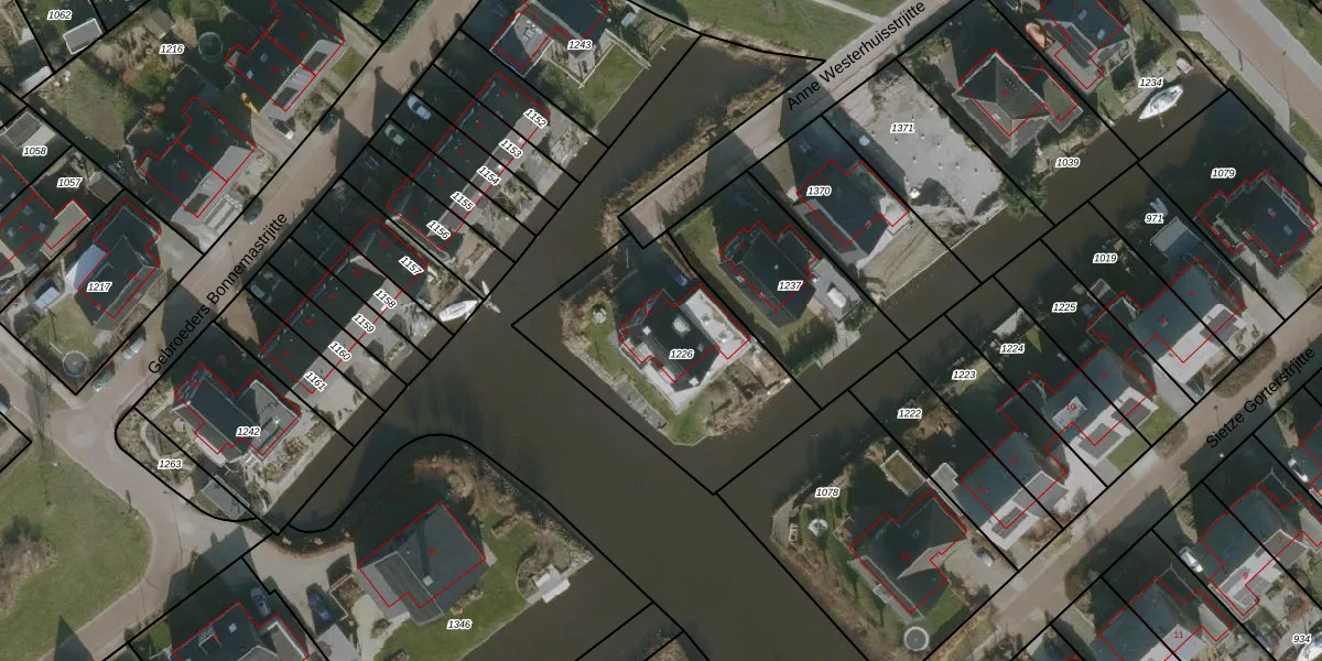 Het perceel waarop Anne Westerhuisstrjitte 11 staat heeft een oppervlakte van 905 m². Dit is een groot perceel. De perceeloppervlakte wordt geregistreerd door het Kadaster. Gedetailleerde informatie over de maten van dit perceel kunt u vinden in het rapport Kadastrale kaart met maatvoering van Anne Westerhuisstrjitte 11.