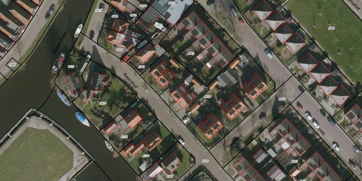 Het perceel waarop Bascohof 7 staat heeft een oppervlakte van 2045 m². Dit is een zeer groot perceel. De perceeloppervlakte wordt geregistreerd door het Kadaster. Gedetailleerde informatie over de maten van dit perceel kunt u vinden in het rapport Kadastrale kaart met maatvoering van Bascohof 7.