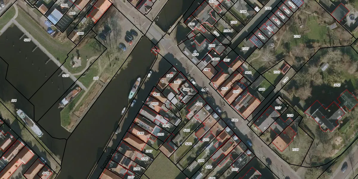 Het perceel waarop het adres ligt is WKM00-A-5488. De afkorting 'WKM00' staat voor kadastrale gemeente Workum. Het perceel is kleiner dan gemiddeld in Workum. Het perceel is 100 m² groot, terwijl het gemiddelde ligt op 3,3 ha. De grootste perceeloppervlakte in de kadastrale gemeente is 65,17 km². De kleinste oppervlakte bedraagt 0 m². Op het perceel bevinden zich geen andere adressen. In de Basisregistratie Kadaster (BRK) werden de grenzen van het perceel geregistreerd op 15-01-1998.