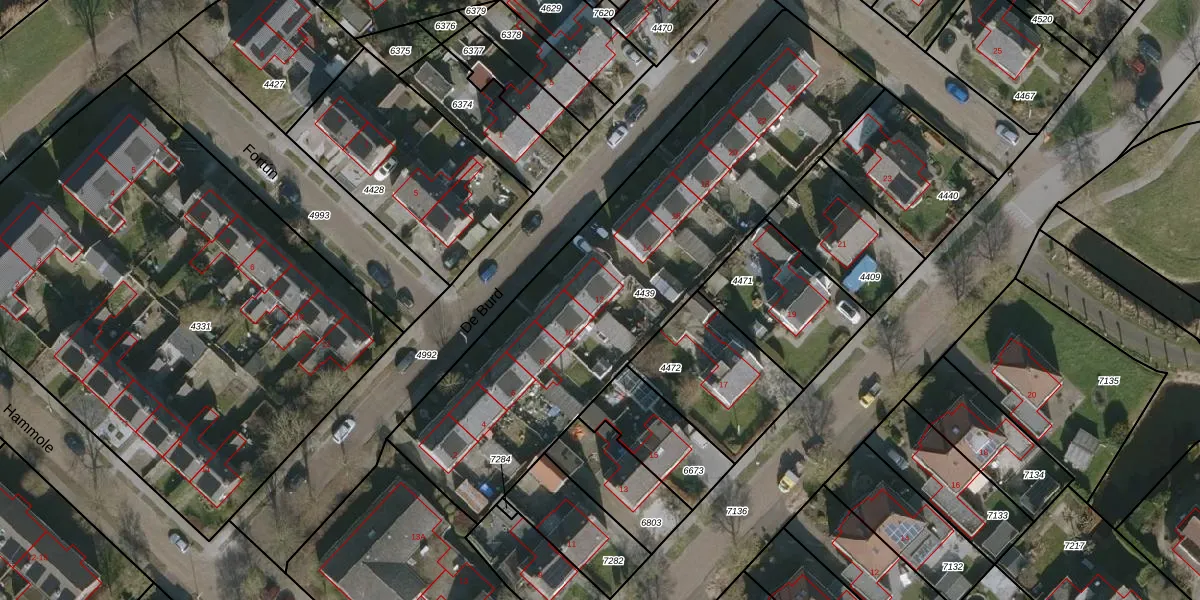 Het perceel waarop De Burd 12 staat heeft een oppervlakte van 2084 m². Dit is een zeer groot perceel. De perceeloppervlakte wordt geregistreerd door het Kadaster. Gedetailleerde informatie over de maten van dit perceel kunt u vinden in het rapport Kadastrale kaart met maatvoering van De Burd 12.