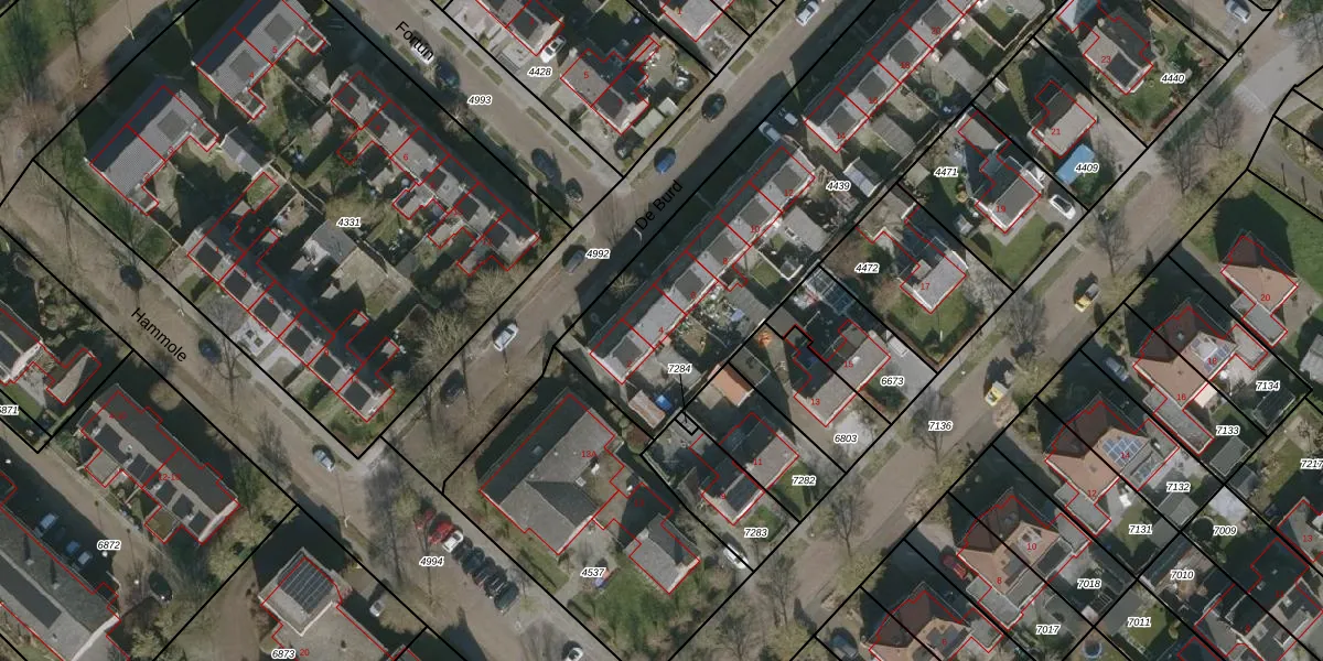 Het perceel waarop De Burd 4 staat heeft een oppervlakte van 2084 m². Dit is een zeer groot perceel. De perceeloppervlakte wordt geregistreerd door het Kadaster. Gedetailleerde informatie over de maten van dit perceel kunt u vinden in het rapport Kadastrale kaart met maatvoering van De Burd 4.