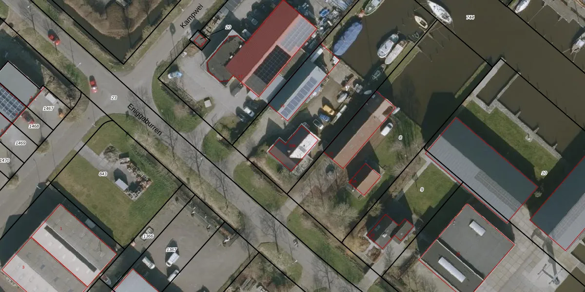 Het adres is gelegen op perceel 7 in de sectie G en de kadastrale gemeente Workum. De kadastrale aanduiding is aldus WKM00-G-7. De gemiddelde perceelgrootte in Workum is 3,3 ha. Dit perceel is kleiner: de perceeloppervlakte bedraagt 1958 m². Het grootste perceel in de kadastrale gemeente is 65,17 km². Het kleinste perceel heeft een oppervlakte van 0 m². Op het perceel liggen in totaal 2 adressen. De laatste wijziging in het de Basisregistratie Kadaster (BRK) was op 02-07-2004.