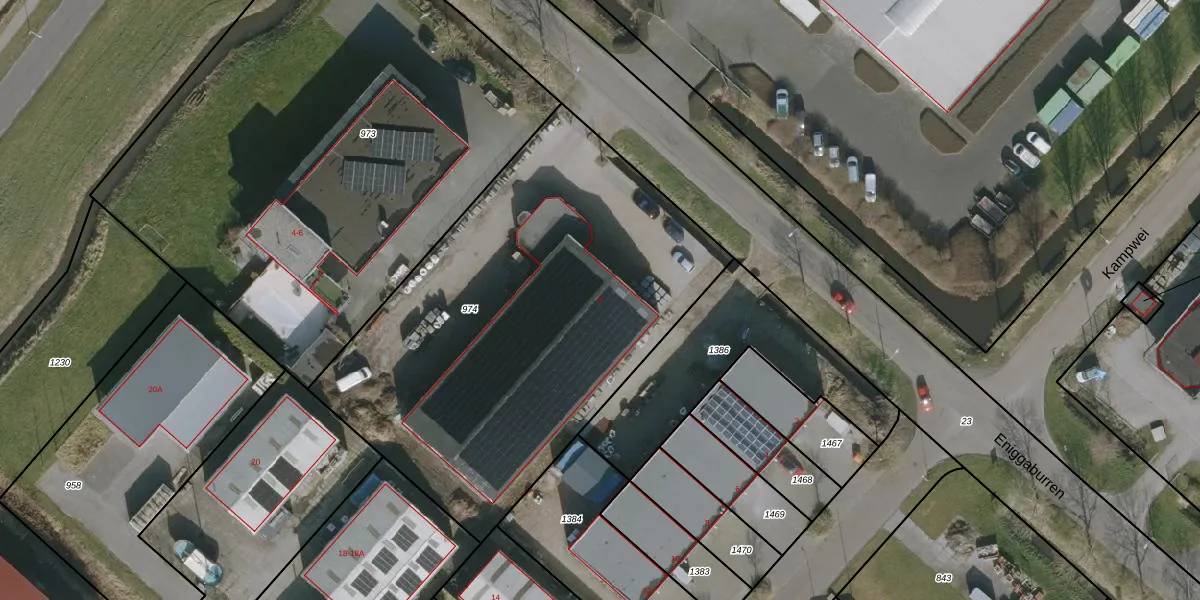 Het perceel waarop Eniggaburren 8 staat heeft een oppervlakte van 2464 m². Dit is een zeer groot perceel. De perceeloppervlakte wordt geregistreerd door het Kadaster. Gedetailleerde informatie over de maten van dit perceel kunt u vinden in het rapport Kadastrale kaart met maatvoering van Eniggaburren 8.