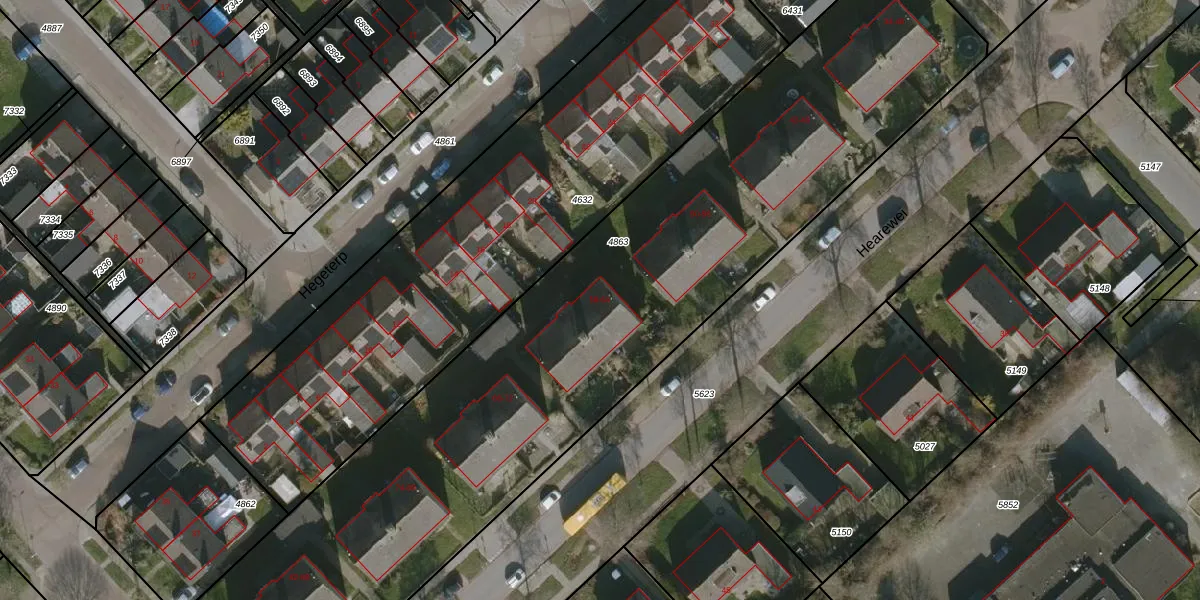 Het perceel waarop Hearewei 58 staat heeft een oppervlakte van 3950 m². Dit is een zeer groot perceel. De perceeloppervlakte wordt geregistreerd door het Kadaster. Gedetailleerde informatie over de maten van dit perceel kunt u vinden in het rapport Kadastrale kaart met maatvoering van Hearewei 58.