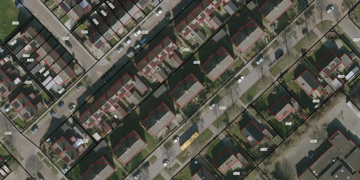 Het perceel waarop Hearewei 62 staat heeft een oppervlakte van 3950 m². Dit is een zeer groot perceel. De perceeloppervlakte wordt geregistreerd door het Kadaster. Gedetailleerde informatie over de maten van dit perceel kunt u vinden in het rapport Kadastrale kaart met maatvoering van Hearewei 62.