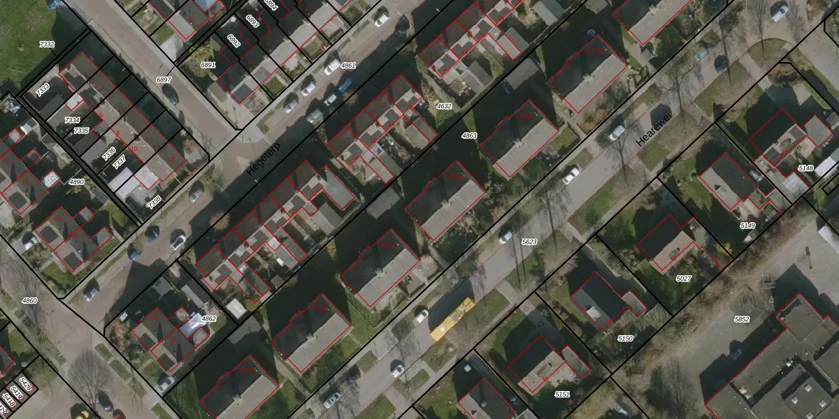 Het perceel waarop Hearewei 64 staat heeft een oppervlakte van 3950 m². Dit is een zeer groot perceel. De perceeloppervlakte wordt geregistreerd door het Kadaster. Gedetailleerde informatie over de maten van dit perceel kunt u vinden in het rapport Kadastrale kaart met maatvoering van Hearewei 64.