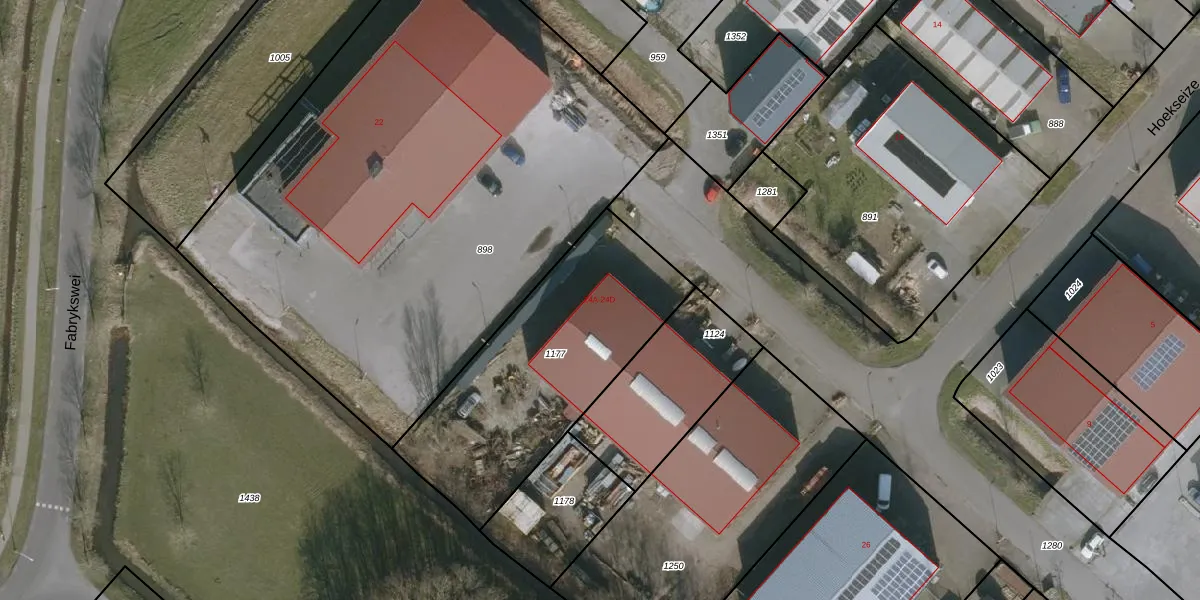 Het perceel waarop Hoekseize 24-A staat heeft een oppervlakte van 1078 m². Dit is een zeer groot perceel. De perceeloppervlakte wordt geregistreerd door het Kadaster. Gedetailleerde informatie over de maten van dit perceel kunt u vinden in het rapport Kadastrale kaart met maatvoering van Hoekseize 24-A.