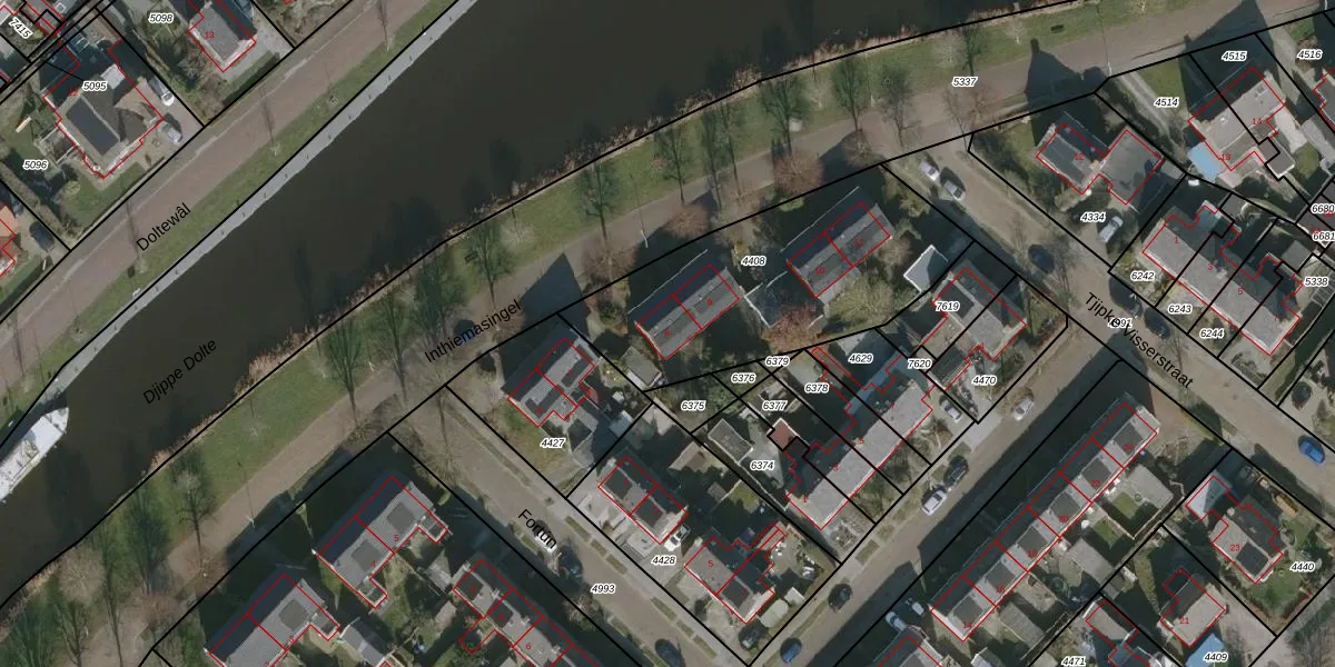 Inthiemasingel 8 is gelegen op kadastraal perceel WKM00A4408. Deze kadastrale aanduiding is uniek en wordt gebruikt door het Kadaster om eigendomsrechten en andere zakelijke rechten vast te leggen. Het perceel maakt onderdeel uit van de kadastrale gemeente Workum.