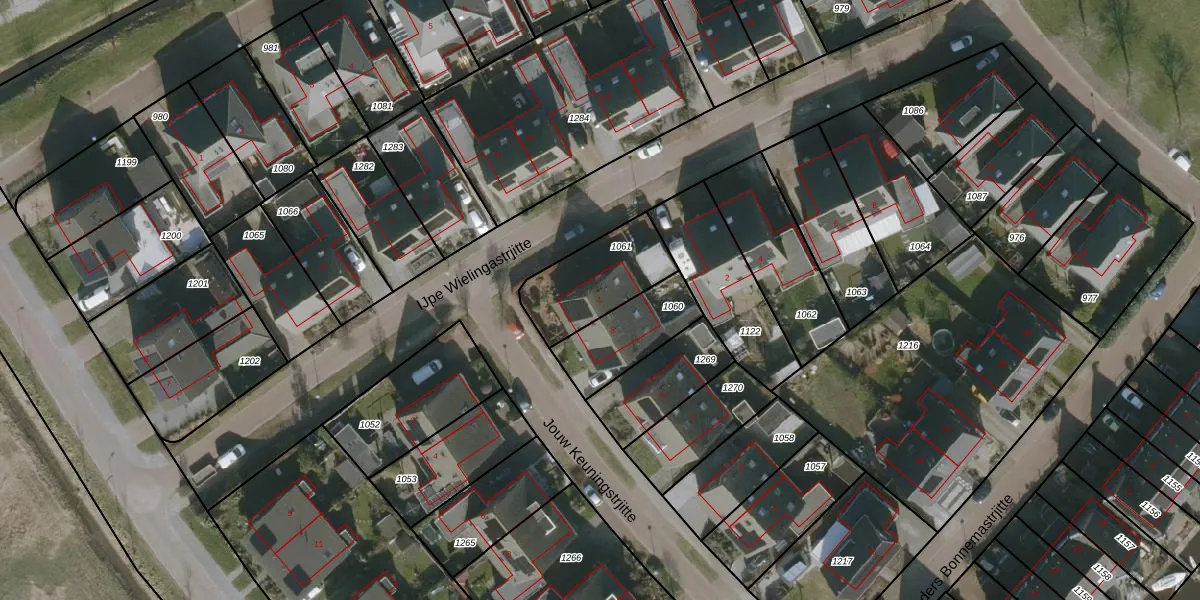 Het perceel waarop Jouw Keuningstrjitte 1 staat heeft een oppervlakte van 292 m². Dit is een middelgroot perceel. De perceeloppervlakte wordt geregistreerd door het Kadaster. Gedetailleerde informatie over de maten van dit perceel kunt u vinden in het rapport Kadastrale kaart met maatvoering van Jouw Keuningstrjitte 1.