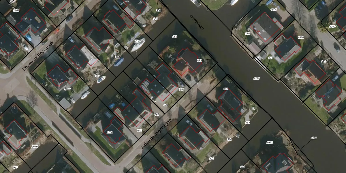 Het perceel waarop Jurjen de Jagerstrjitte 9 staat heeft een oppervlakte van 363 m². Dit is een groot perceel. De perceeloppervlakte wordt geregistreerd door het Kadaster. Gedetailleerde informatie over de maten van dit perceel kunt u vinden in het rapport Kadastrale kaart met maatvoering van Jurjen de Jagerstrjitte 9.
