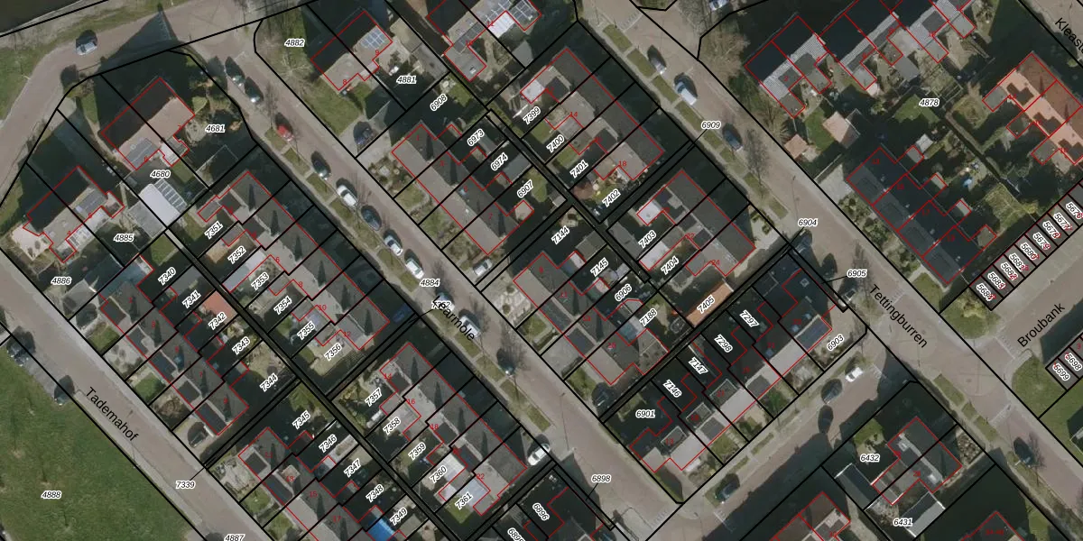 Het adres is gelegen op perceel 7144 in de sectie A en de kadastrale gemeente Workum. De kadastrale aanduiding is aldus WKM00-A-7144. De gemiddelde perceelgrootte in Workum is 3,3 ha. Dit perceel is kleiner: de perceeloppervlakte bedraagt 222 m². Het grootste perceel in de kadastrale gemeente is 65,17 km². Het kleinste perceel heeft een oppervlakte van 0 m². Er zijn geen andere adressen aanwezig op het perceel. De laatste wijziging in het de Basisregistratie Kadaster (BRK) was op 12-12-2007.