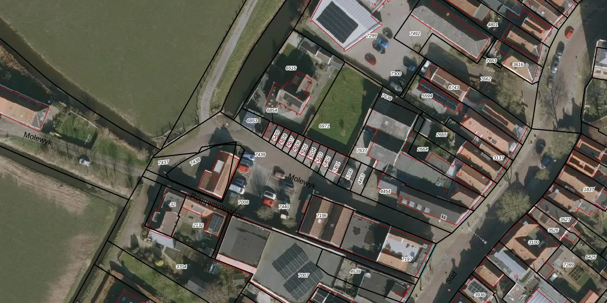 Het perceel waarop Molewyk 14 staat heeft een oppervlakte van 23 m². Dit is een klein perceel. De perceeloppervlakte wordt geregistreerd door het Kadaster. Gedetailleerde informatie over de maten van dit perceel kunt u vinden in het rapport Kadastrale kaart met maatvoering van Molewyk 14.