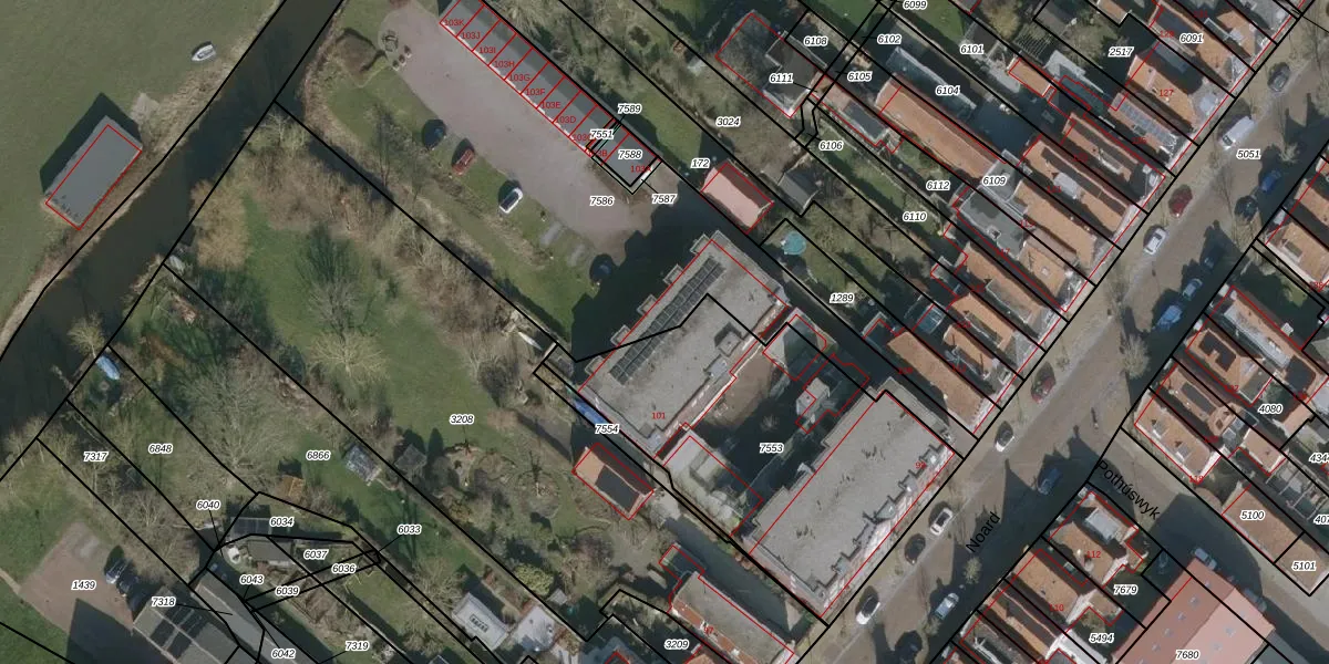 Het perceel waarop Noard 101-103 staat heeft een oppervlakte van 2320 m². Dit is een zeer groot perceel. De perceeloppervlakte wordt geregistreerd door het Kadaster. Gedetailleerde informatie over de maten van dit perceel kunt u vinden in het rapport Kadastrale kaart met maatvoering van Noard 101-103.