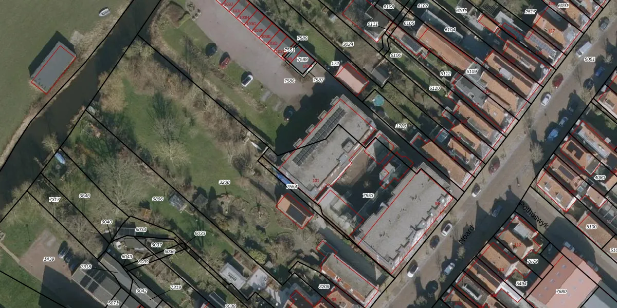 Noard 101-104 is gelegen op kadastraal perceel WKM00A7553. Deze kadastrale aanduiding is uniek en wordt gebruikt door het Kadaster om eigendomsrechten en andere zakelijke rechten vast te leggen. Het perceel maakt onderdeel uit van de kadastrale gemeente Workum.