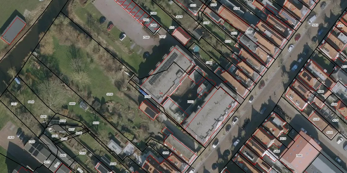 Het perceel waarop Noard 101 staat heeft een oppervlakte van 1435 m². Dit is een zeer groot perceel. De perceeloppervlakte wordt geregistreerd door het Kadaster. Gedetailleerde informatie over de maten van dit perceel kunt u vinden in het rapport Kadastrale kaart met maatvoering van Noard 101.