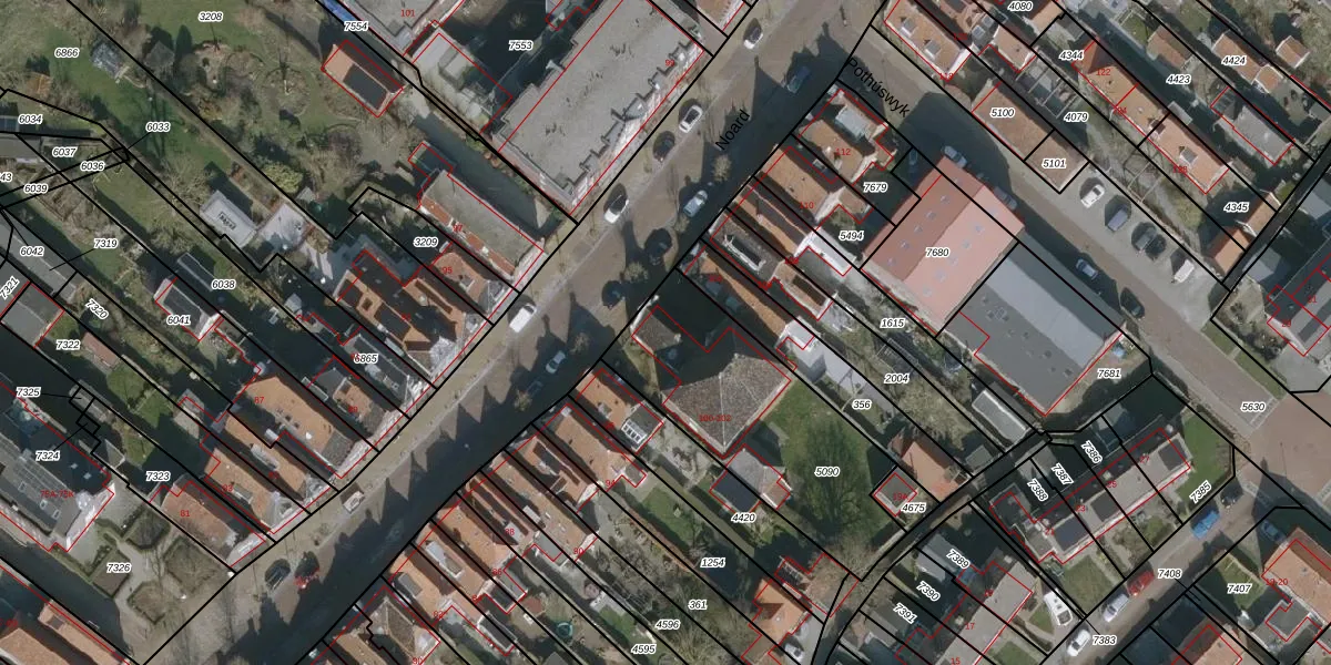 Het perceel waarop Noard 102 staat heeft een oppervlakte van 850 m². Dit is een groot perceel. De perceeloppervlakte wordt geregistreerd door het Kadaster. Gedetailleerde informatie over de maten van dit perceel kunt u vinden in het rapport Kadastrale kaart met maatvoering van Noard 102.