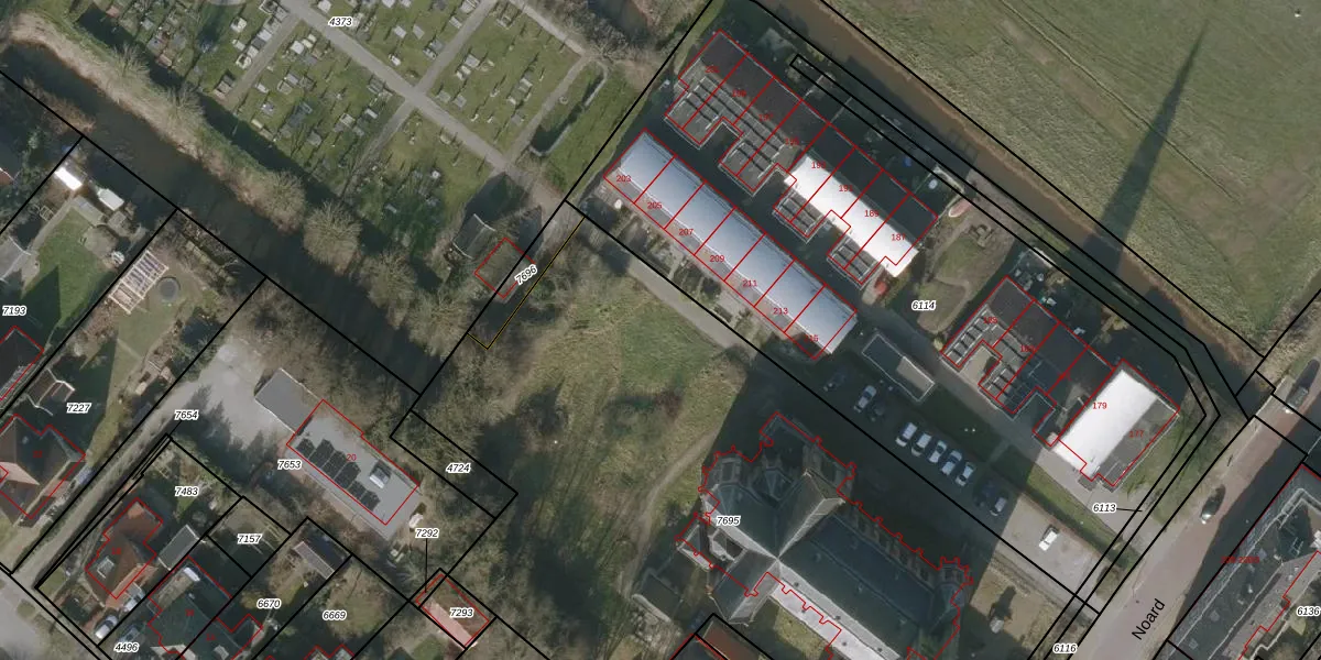 Het perceel waarop Noard 175-E staat heeft een oppervlakte van 4309 m². Dit is een zeer groot perceel. De perceeloppervlakte wordt geregistreerd door het Kadaster. Gedetailleerde informatie over de maten van dit perceel kunt u vinden in het rapport Kadastrale kaart met maatvoering van Noard 175-E.