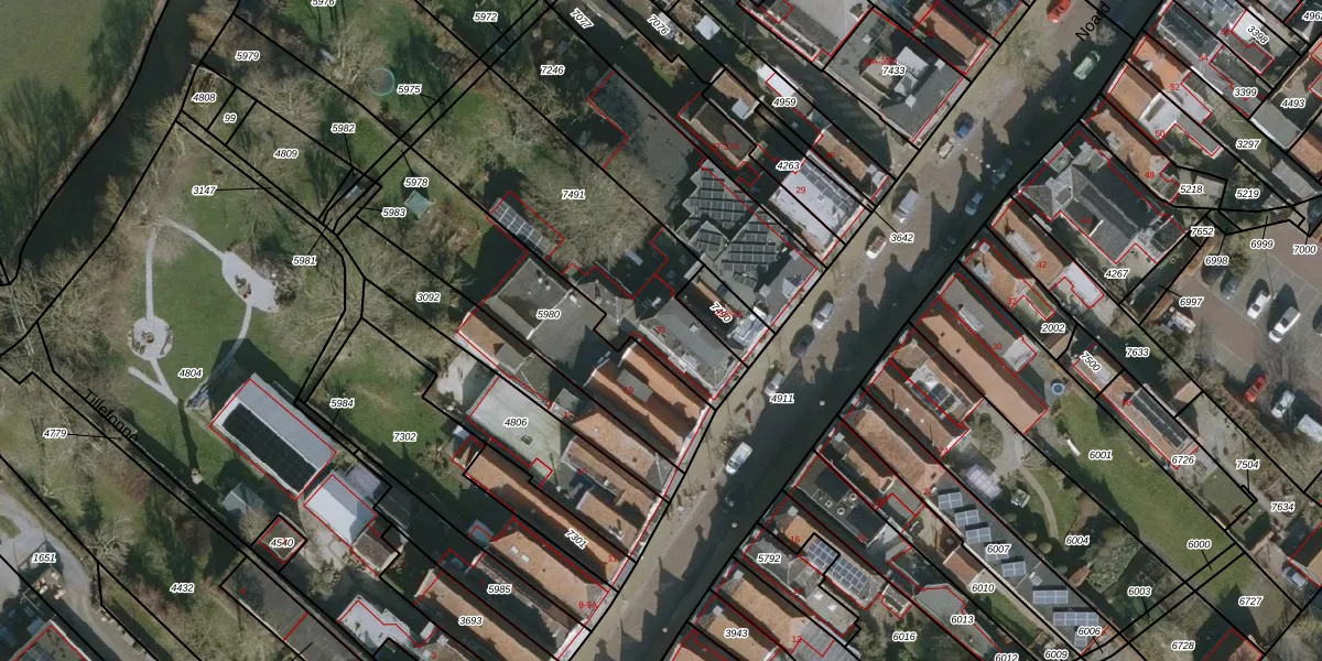 Het perceel waarop Noard 23 staat heeft een oppervlakte van 875 m². Dit is een groot perceel. De perceeloppervlakte wordt geregistreerd door het Kadaster. Gedetailleerde informatie over de maten van dit perceel kunt u vinden in het rapport Kadastrale kaart met maatvoering van Noard 23.