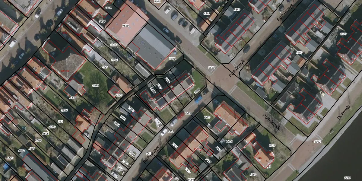 Het perceel waarop Pothúswyk 25 staat heeft een oppervlakte van 130 m². Dit is een middelgroot perceel. De perceeloppervlakte wordt geregistreerd door het Kadaster. Gedetailleerde informatie over de maten van dit perceel kunt u vinden in het rapport Kadastrale kaart met maatvoering van Pothúswyk 25.