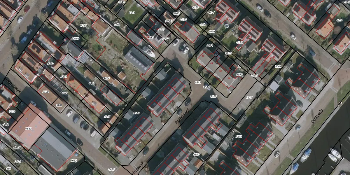 Het perceel waarop Pothúswyk 43 staat heeft een oppervlakte van 1265 m². Dit is een zeer groot perceel. De perceeloppervlakte wordt geregistreerd door het Kadaster. Gedetailleerde informatie over de maten van dit perceel kunt u vinden in het rapport Kadastrale kaart met maatvoering van Pothúswyk 43.