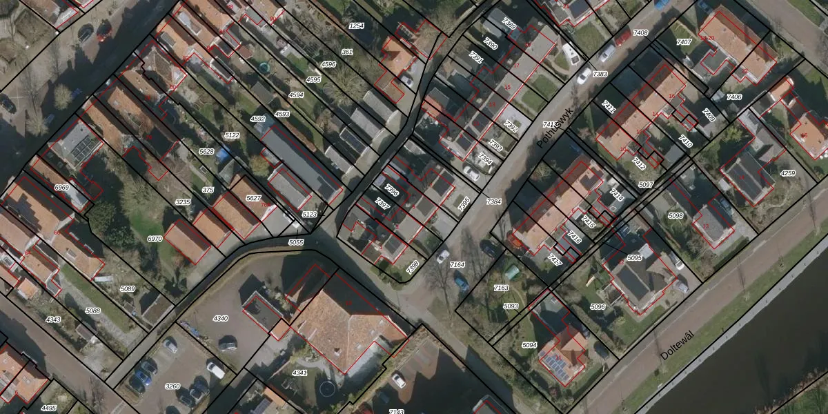 Het perceel waarop het adres ligt is WKM00-A-7396. De afkorting 'WKM00' staat voor kadastrale gemeente Workum. De gemiddelde perceelgrootte in Workum is 3,3 ha. Dit perceel is kleiner: de perceeloppervlakte bedraagt 132 m². De grootste perceeloppervlakte in de kadastrale gemeente is 65,17 km². De kleinste oppervlakte bedraagt 0 m². Er zijn geen andere adressen aanwezig op het perceel. De huidige grenzen van het perceel zijn digitaal in de Basisregistratie Kadaster (BRK) geregistreerd op 05-12-2007.