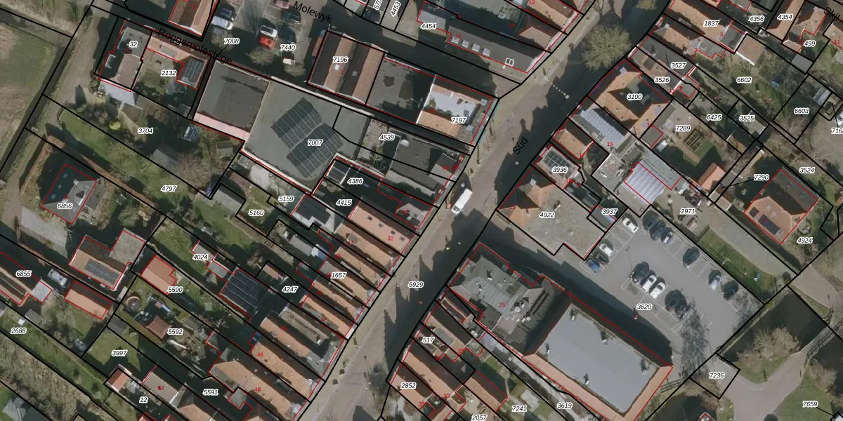 Het perceel waarop Súd 26 staat heeft een oppervlakte van 166 m². Dit is een middelgroot perceel. De perceeloppervlakte wordt geregistreerd door het Kadaster. Gedetailleerde informatie over de maten van dit perceel kunt u vinden in het rapport Kadastrale kaart met maatvoering van Súd 26.