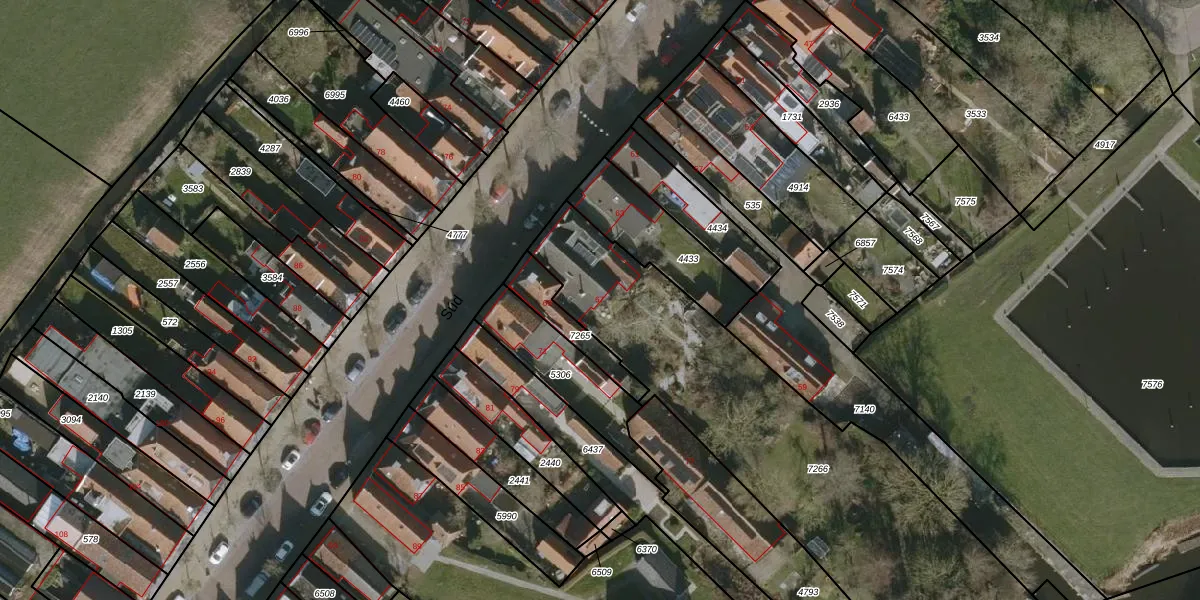 Het adres is gelegen op perceel 7266 in de sectie A en de kadastrale gemeente Workum. De kadastrale aanduiding is aldus WKM00-A-7266. De gemiddelde perceelgrootte in Workum is 3,3 ha. Dit perceel is kleiner: de perceeloppervlakte bedraagt 1856 m². Het grootste perceel in de kadastrale gemeente is 65,17 km². Het kleinste perceel heeft een oppervlakte van 0 m². Op het perceel bevinden zich geen andere adressen. In de Basisregistratie Kadaster (BRK) werden de grenzen van het perceel geregistreerd op 23-02-2004.