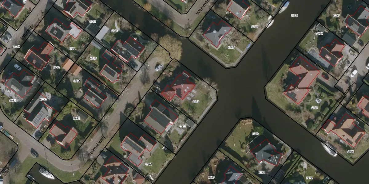 Het perceel waarop Seilmakkerij 1 staat heeft een oppervlakte van 687 m². Dit is een groot perceel. De perceeloppervlakte wordt geregistreerd door het Kadaster. Gedetailleerde informatie over de maten van dit perceel kunt u vinden in het rapport Kadastrale kaart met maatvoering van Seilmakkerij 1.