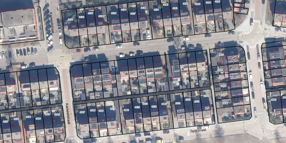 Gebruik de zoekbalk of klik op een perceel voor informatie over de adressen binnen dit perceel.