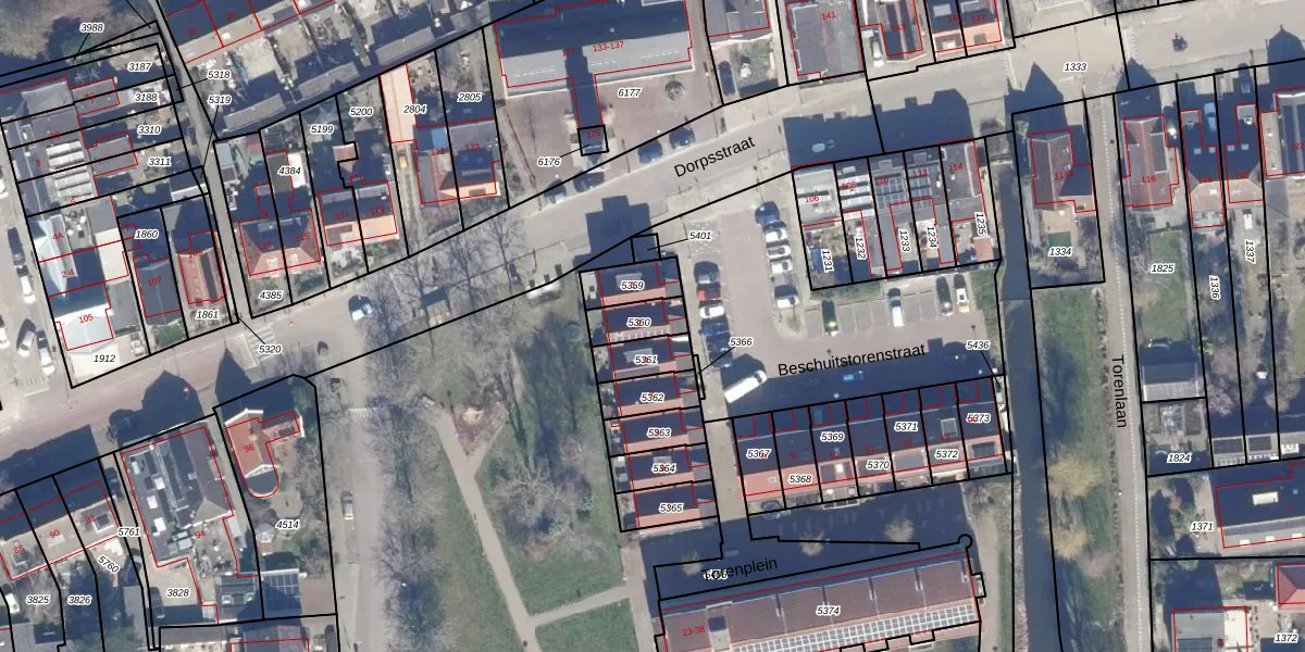 Het perceel waarop Beschuitstorenstraat 2 staat heeft een oppervlakte van 86 m². Dit is een klein perceel. De perceeloppervlakte wordt geregistreerd door het Kadaster. Gedetailleerde informatie over de maten van dit perceel kunt u vinden in het rapport Kadastrale kaart met maatvoering van Beschuitstorenstraat 2.