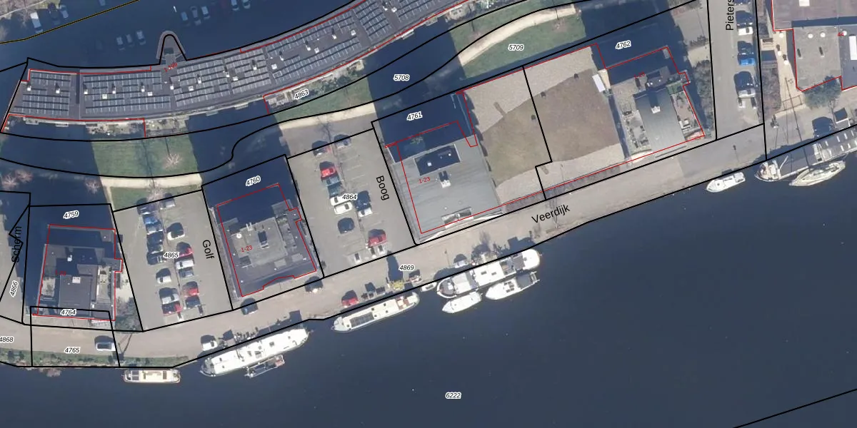 Het perceel waarop Boog 5 staat heeft een oppervlakte van 1075 m². Dit is een zeer groot perceel. De perceeloppervlakte wordt geregistreerd door het Kadaster. Gedetailleerde informatie over de maten van dit perceel kunt u vinden in het rapport Kadastrale kaart met maatvoering van Boog 5.