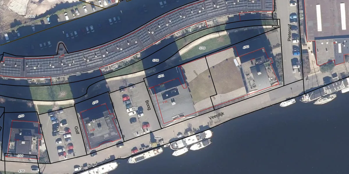 Het perceel waarop Boog 8 staat heeft een oppervlakte van 1075 m². Dit is een zeer groot perceel. De perceeloppervlakte wordt geregistreerd door het Kadaster. Gedetailleerde informatie over de maten van dit perceel kunt u vinden in het rapport Kadastrale kaart met maatvoering van Boog 8.
