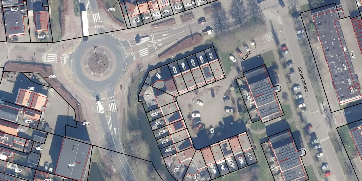 Het perceel waarop CarrĂ© 15 staat heeft een oppervlakte van 98 m². Dit is een klein perceel. De perceeloppervlakte wordt geregistreerd door het Kadaster. Gedetailleerde informatie over de maten van dit perceel kunt u vinden in het rapport Kadastrale kaart met maatvoering van CarrĂ© 15.