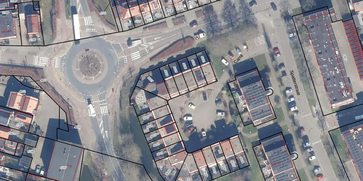 Het perceel waarop CarrĂ© 16 staat heeft een oppervlakte van 98 m². Dit is een klein perceel. De perceeloppervlakte wordt geregistreerd door het Kadaster. Gedetailleerde informatie over de maten van dit perceel kunt u vinden in het rapport Kadastrale kaart met maatvoering van CarrĂ© 16.