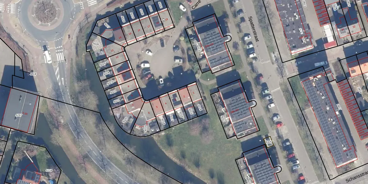 Gebruik de zoekbalk of klik op een perceel voor informatie over de adressen binnen dit perceel.
